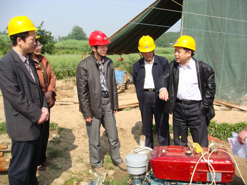 章书记等一路现场了解庐江查巴店,枞阳马口、石矶、花山等勘查区的工作进展情况,分析矿样赋矿及矿床走向情况。
