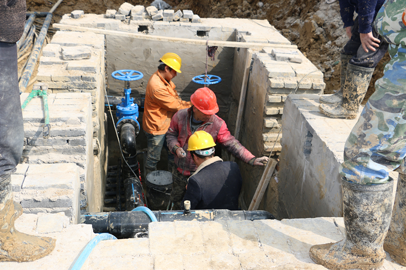 一是围绕关键工序,合理编制施工小组。项目部在原有队伍基础上将一线施工员增至47人,其中管道焊接施工人员28人、检查井施工人员19人,并结合施工特点将人员编制成10个焊接班组和4个检查井班组,焊接班组采取固定地点工作模式,检查井班组实行流动工作模式。二是主攻施工难点,加大设备投入。项目部根据场地施工条件,新增大型挖机2台,小型挖机1台,现场共有6台挖机同时进行开挖、回填施工。为提高管道焊接效率,新增PE管对接焊机3台、热熔焊机2台,并合理安排仓储位置便于管材搬运。三是明确人员职责,严格管理制度。项目部紧抓雨水天气前的施工黄金期,延长每日工作时间,并根据施工要求从现场关系协调、施工质量标准、工序安排、资料整理验收、施工队伍管理等方面明确细化每个成员的工作职责。坚持每天下班前例会制度,总结当天施工进度,分析下步工作难点,保证各项工作按计划推进。五是强化安全生产意识,确保项目安全顺利进行。项目部认真落实安全目标责任,加大对施工现场重点部位、重点环节的安全监管力度,在加快进度的同时确保施工安全。