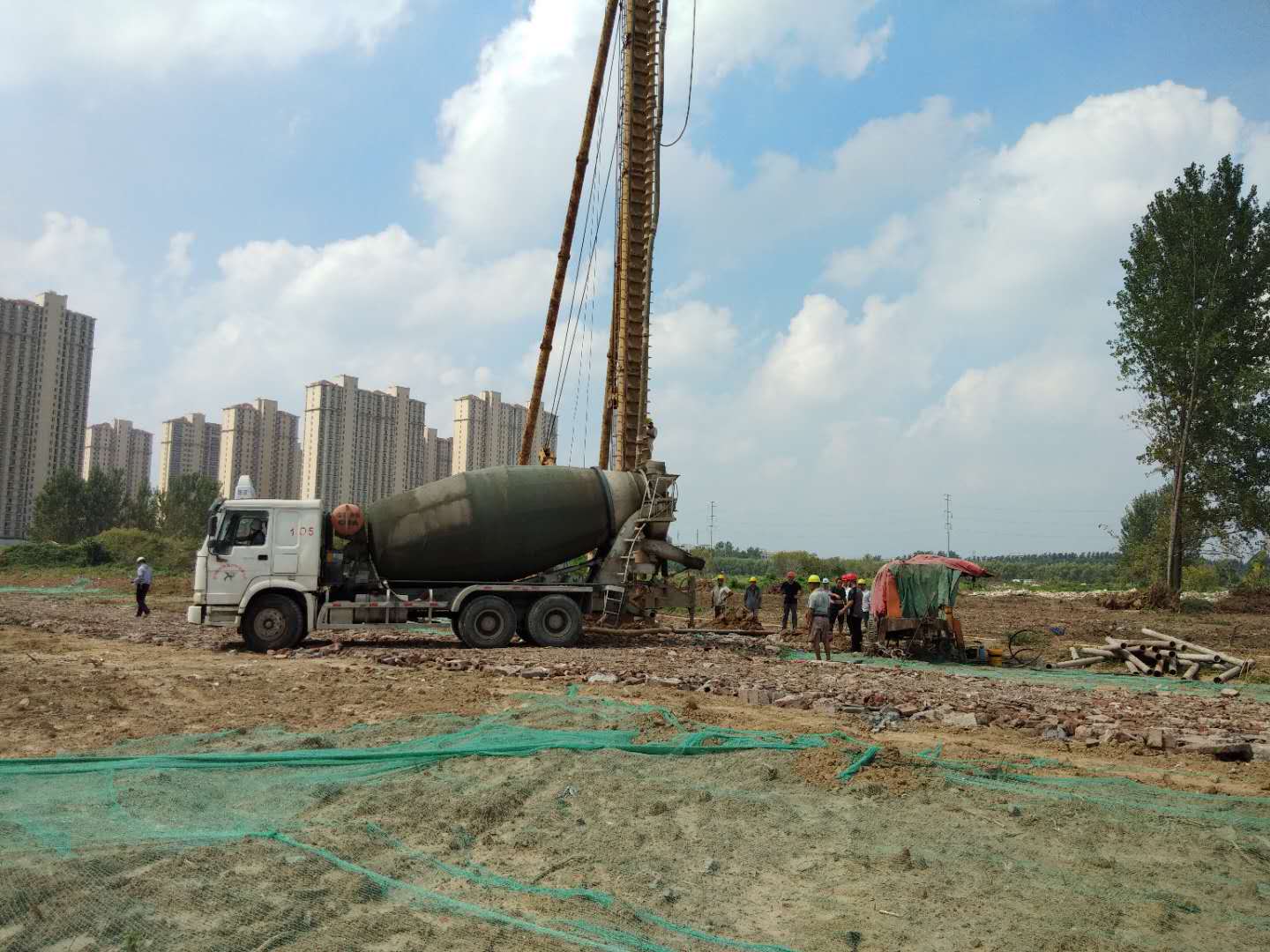 针对在施工过程中遇到的CFG桩空头深,砼超灌量难以控制等问题,技术人员一边施工,一边反复测试,在实验中总结经验,争取砼超灌量最少,达到预期目标。目前施工现场已逐步走上正轨,项目部正按照当地政府相关部门的要求,加强安全、质量管理,强化绿色、环保施工。